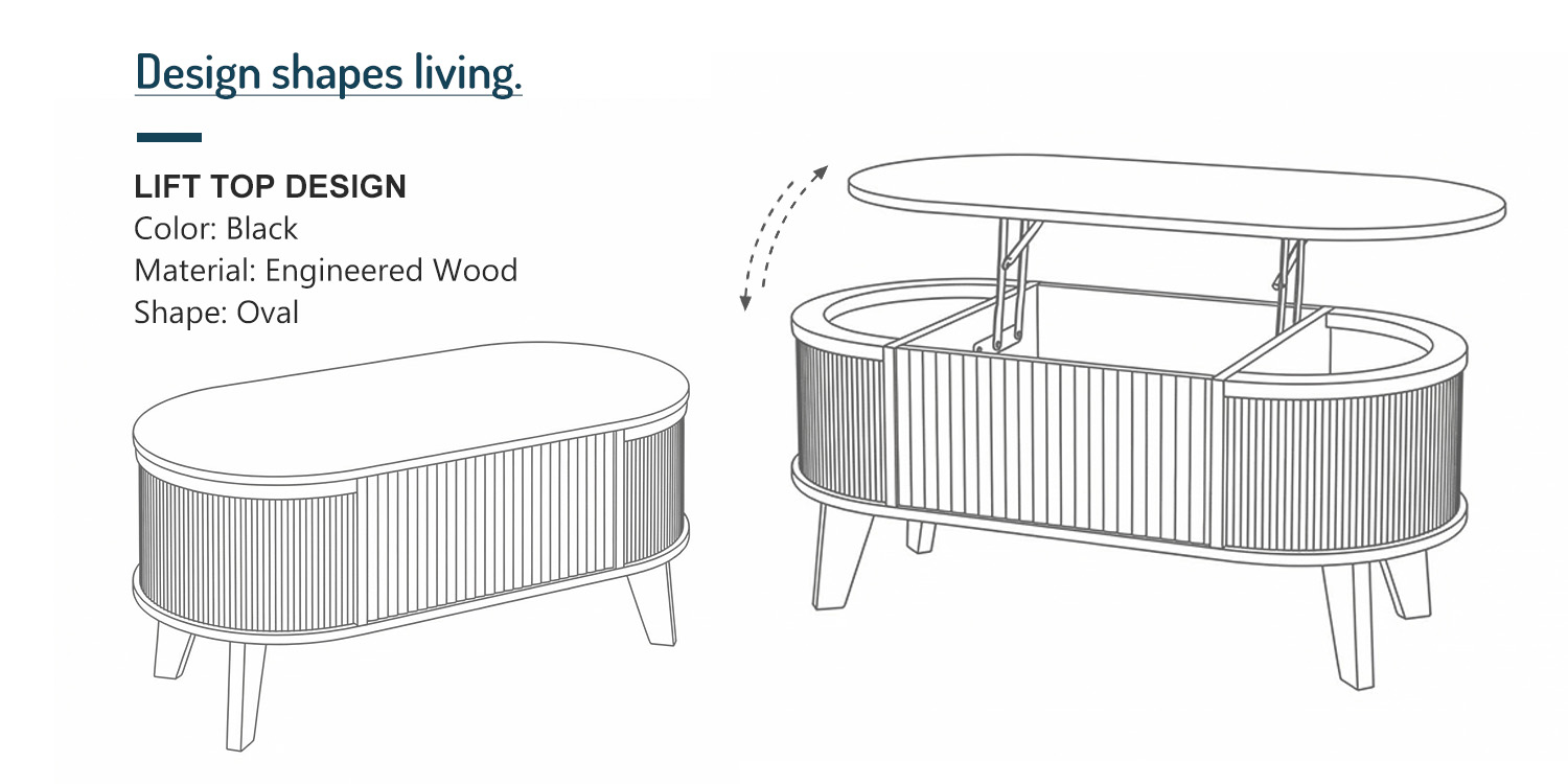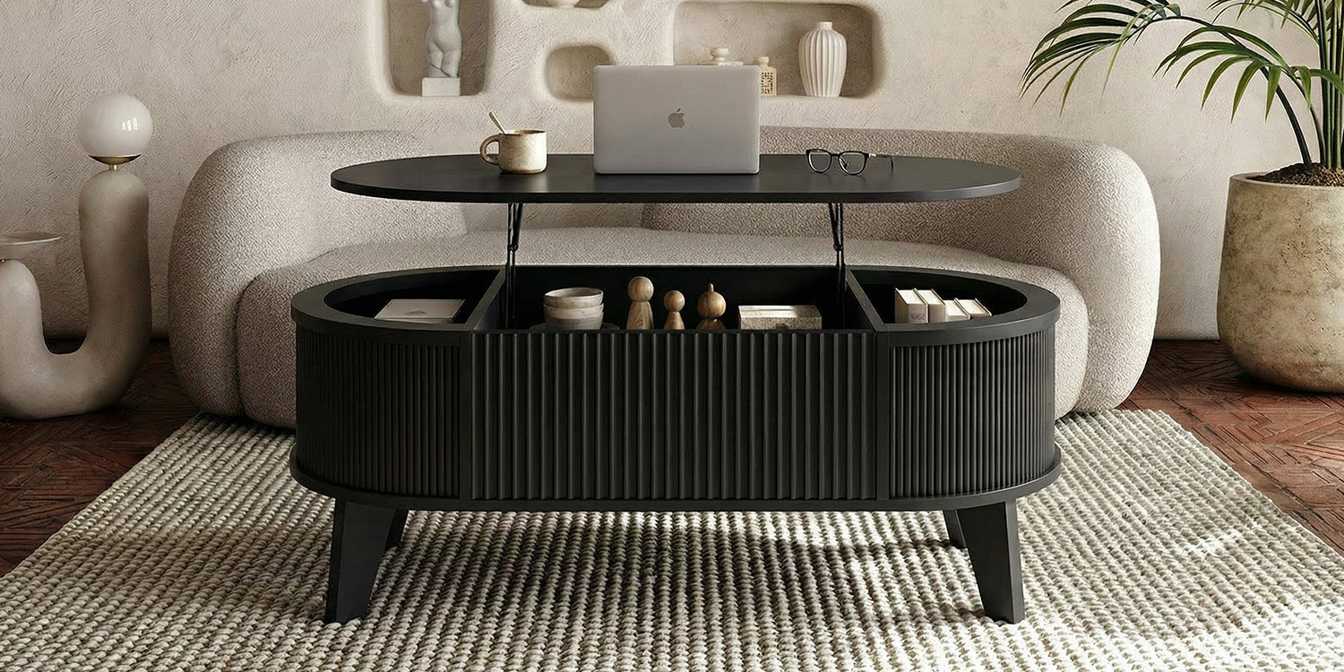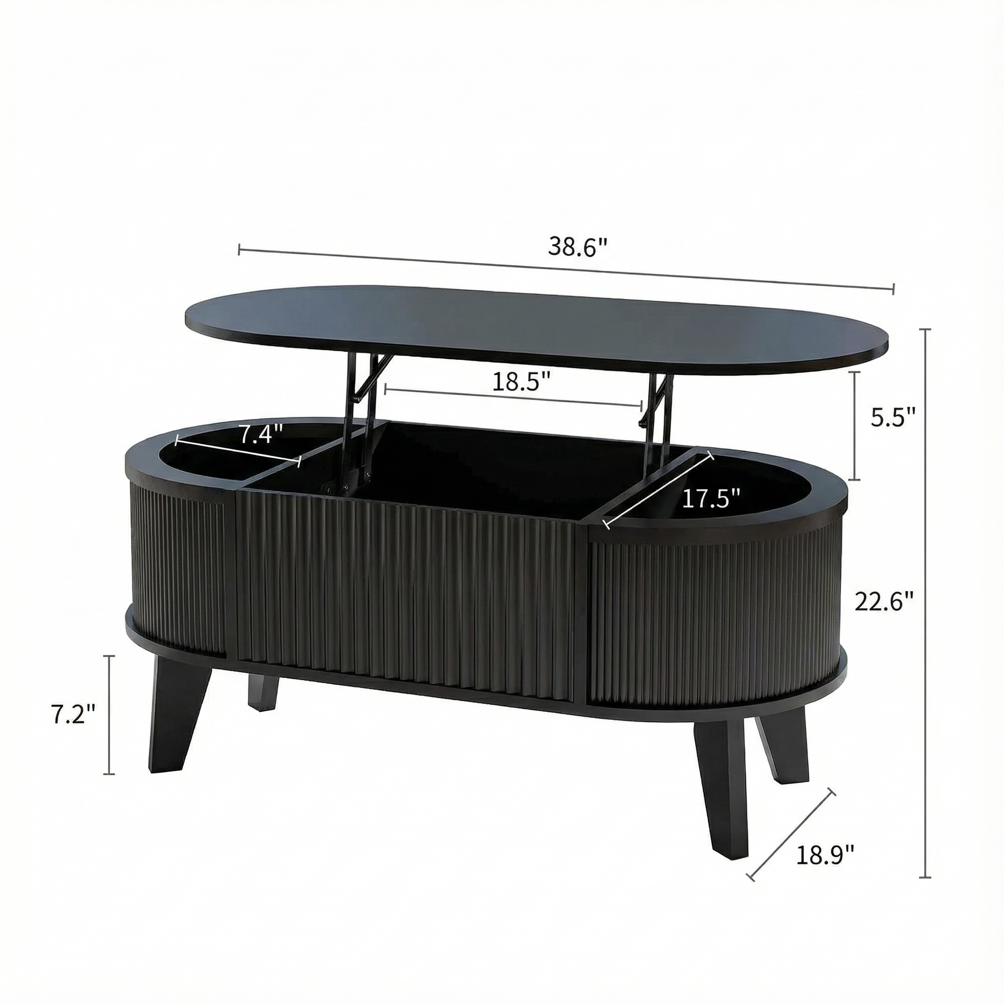 Fluted Lift Top Coffee Table with Storage for Living Room or Home Office-black
