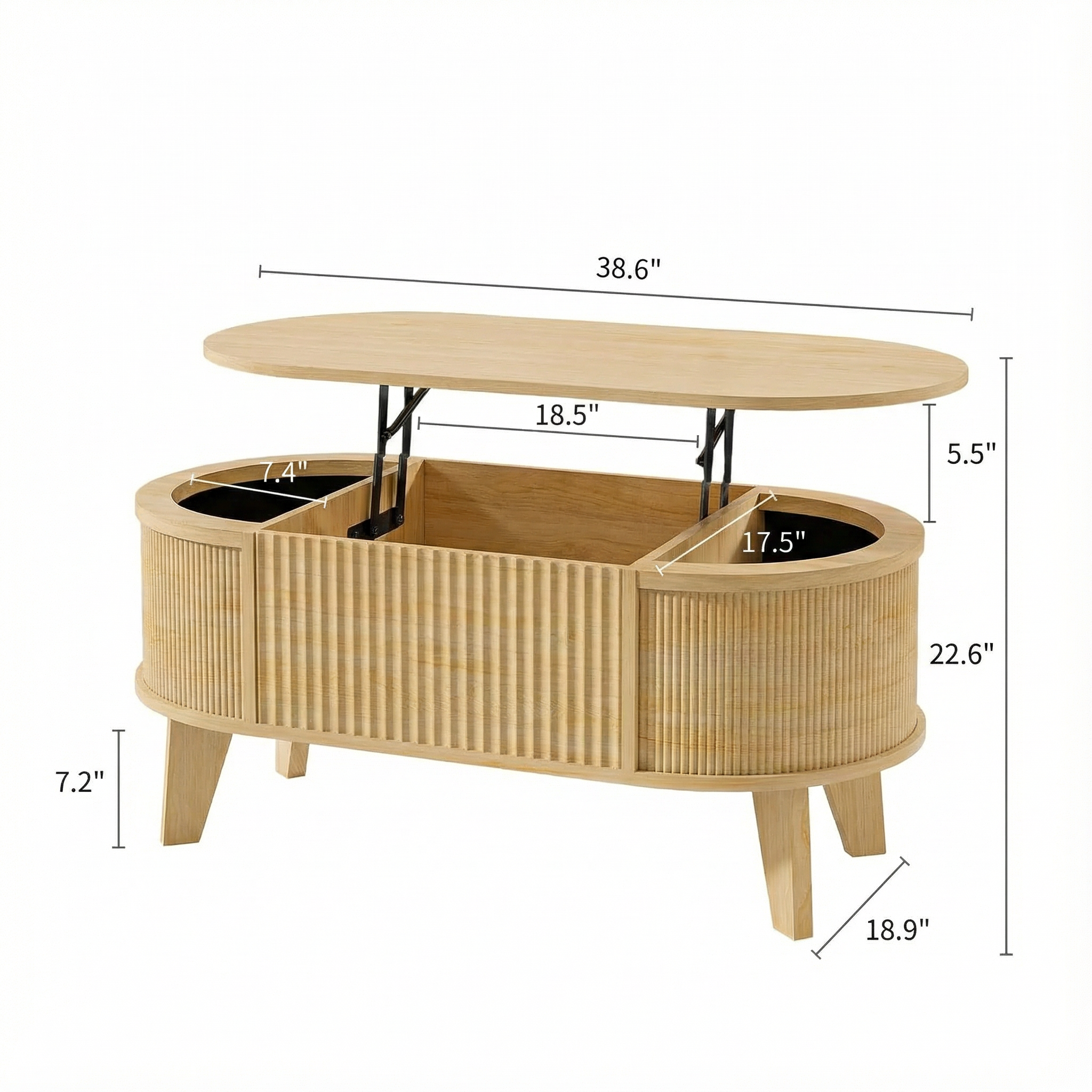 Fluted Lift Top Coffee Table with Storage for Living Room or Home Office-Natural